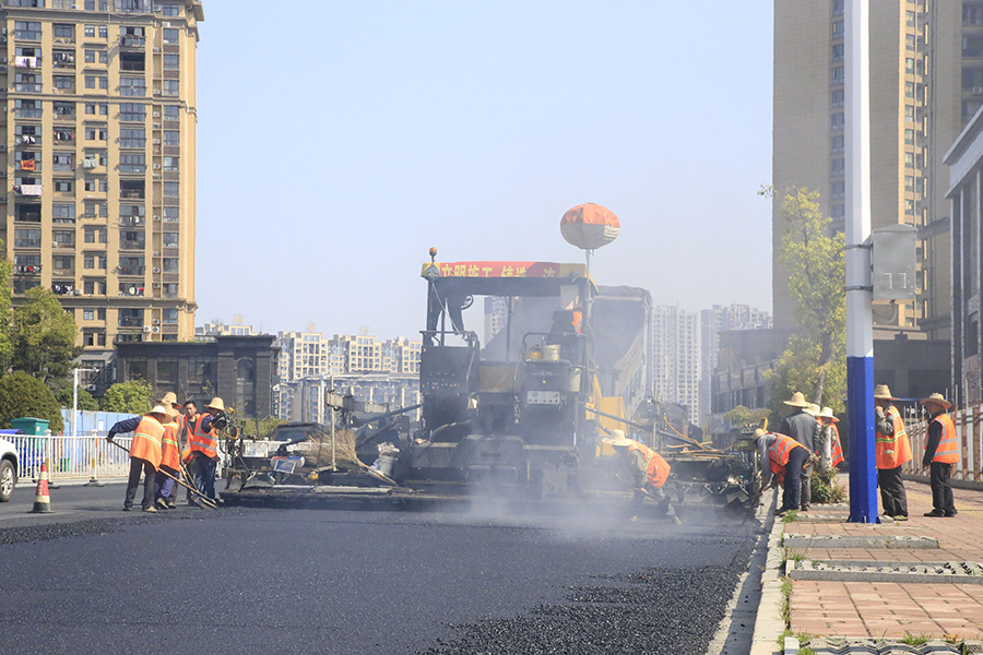 2019年8月,宜春經(jīng)開區(qū)S311路面攤鋪現(xiàn)場,工友們輔助路面兩側(cè)的分料、補(bǔ)窩等作業(yè)